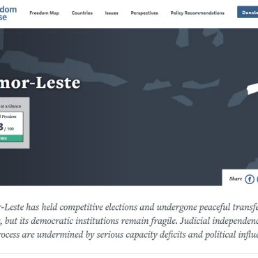 insert_link 2 Destaques Timor-Leste sobe no índice de liberdade mundial, Guiné-Bissau cai a pique DILI, 20 de março de 2026 (RAFA.tl) – Timor-Leste melhorou a sua pontuação no mais recente índice de liberdade mundial, subindo um ponto para 73 em 100 na avaliação da Freedom House, o que coloca o país na categoria de países “Livres”. O resultado contrasta com a tendência global de retrocesso, segundo o relatório que concluiu que a liberdade mundial diminuiu pelo vigésimo ano consecutivo em 2025, com 54 países […] todayMarço 20, 2026 33 2